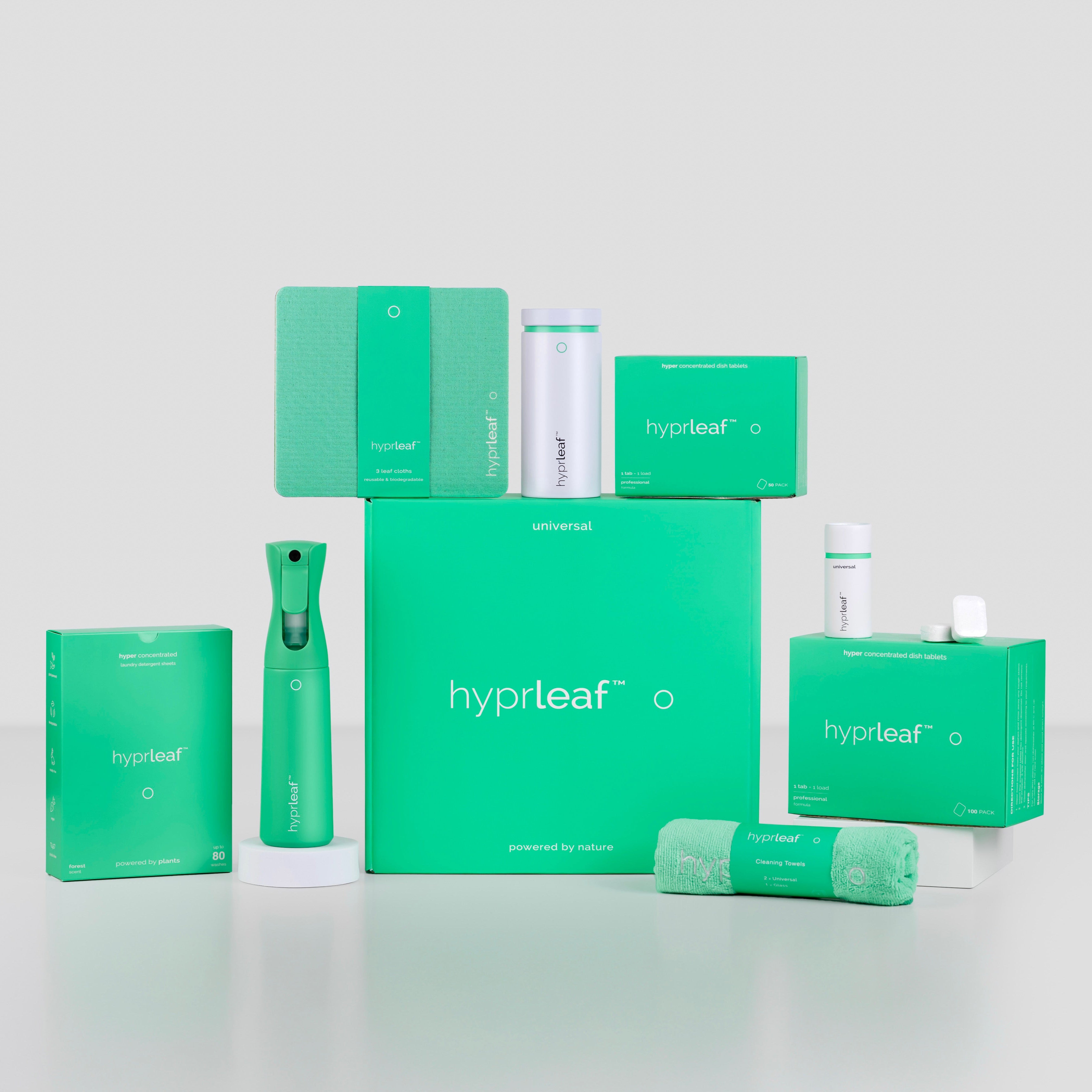 Discover the Ultimate Starter Bundle by Hyprleaf, featuring the complete range of eco-friendly cleaning essentials. This all-in-one set includes the Universal Starter Kit, Laundry Sheets, Dish Tablets, and Leaf Cloths, designed to simplify your cleaning routine while reducing environmental impact. Each product is crafted for effectiveness and sustainability, offering a powerful yet gentle clean for your home. Perfect for those seeking a comprehensive, expert-approved solution to everyday cleaning needs. Elevate your cleaning experience with Hyprleaf’s thoughtfully curated bundle.